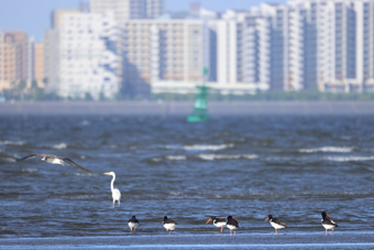 ハマシギ・ミユビシギ・オオソリハシシギ等のシギ類や、ダイゼン・メダイチドリ等のチドリ類は春・秋の渡りシーズンで多くの種類が観察できますが、それ以外の季節でも多様な姿を見ることができます。また、夏にはアジサシ類、冬はカモメ類、カモ類が多く訪れます。