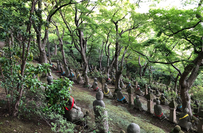 映画のロケ地にもなった、「五百羅漢」の辺りがいちばんのおすすめです。「五百羅漢」は、階段がとても急で、木の根っこがあちこちで張り出しています。鳥を見るのに夢中になって転ばないよう、足下に十分注意してください。