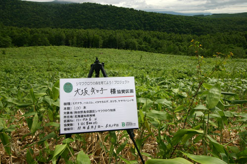 6月20日~22日に、知床の協賛区画の巡回に行って来ました。20日から21日にかけて、台風4号(東北の東の海上で温帯低気圧に変わった)の影響で、知床でも強風が吹いていましたが、この台風による苗木の倒木やシカ柵損傷等の被害はありませんでした。植樹直後の8日から始まったシカ柵の補強工事は、21日までに無事に完了し、下草が伸び始めていた協賛区画の下草刈りも22日~23日に完了しています。