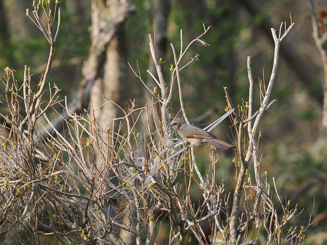 - 木の枝に絡まったビニールひもにとまり、細かく裂いたビニールひもを口にくわえていた。巣材として利用。