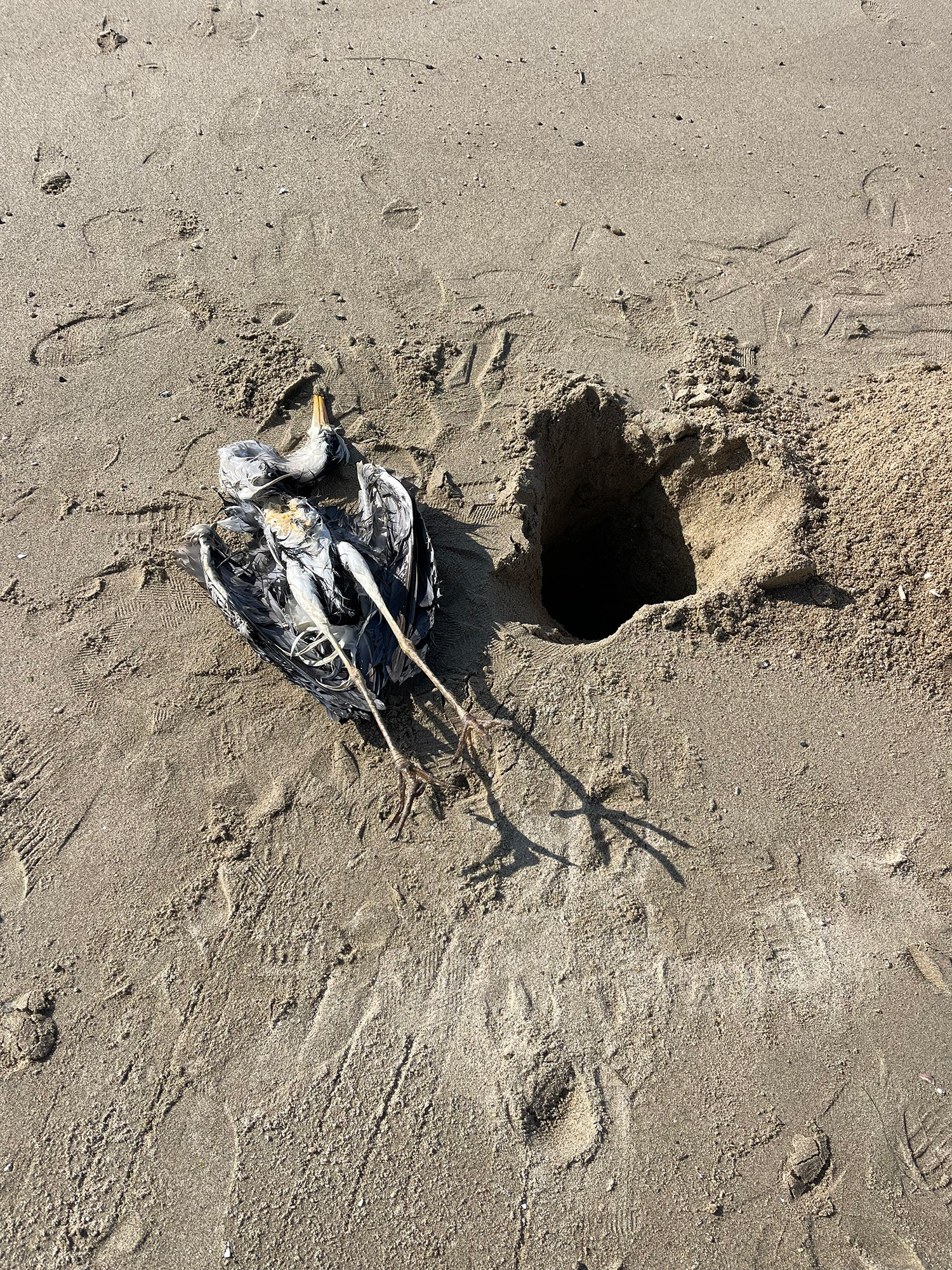 事例86.ルアーの糸が絡まったアオサギの死体