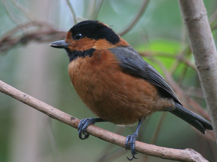 When you see a tit in Miyakejima, watch carefully the colors of its plumage. Different from other subspecies of Varied Tit in Japan, its forehead, cheeks and upper-breast are reddish brown. The body is a little bigger than other subspecies of Varied Tit. The birds breed in Miyakejima, Mikurajima and Hachijojima on the Izushoto islands (Endangered, EN).